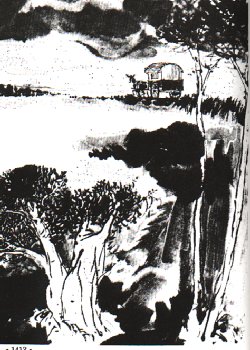 | [Moonlight poured on the wide and straight road like a stream. Light fog and mist shrouded the trees by the road. Sweet smell from wild flowers was heavy for a moment and then light for the next. Small breeze stroked people's face. Linghu Chong hadn't had any wine for a long time, but now he felt a bit tipsy like he just had some.] |