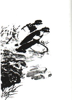 | [The two figures in the reflection looked exactly the same, both had baggy lady's robes, even the hair bun were no different. It was an exact copy of him. Linghu Chong was so frightened that his heart almost stopped beating.] |